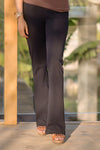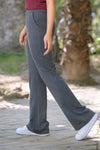 These pants make a perfect do it all trousers. Featuring a high-rise fit, elastic waistband and flared leg openings. Wear to lounge around the house or dress it with a cute t-shirt and sneakers.